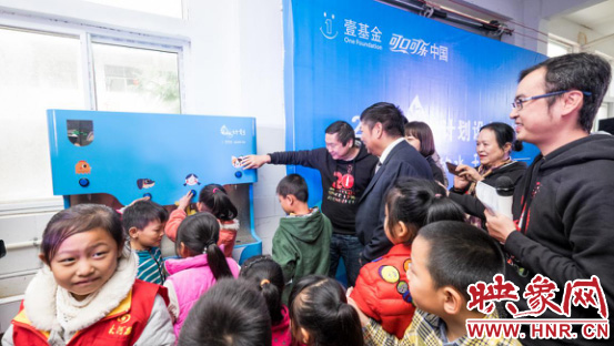 ?。?016年10月28日,周口)“天冷了,可以直接有干凈的熱水喝,太好了?!眹掳惭b上的凈水設備,姚集元橋小學的孩子們十分的好奇。