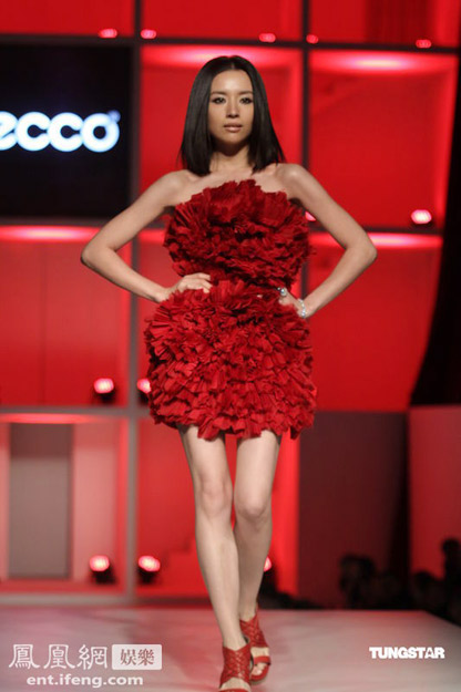 董潔花朵紅裙性感走秀 與人碰杯豪飲美酒