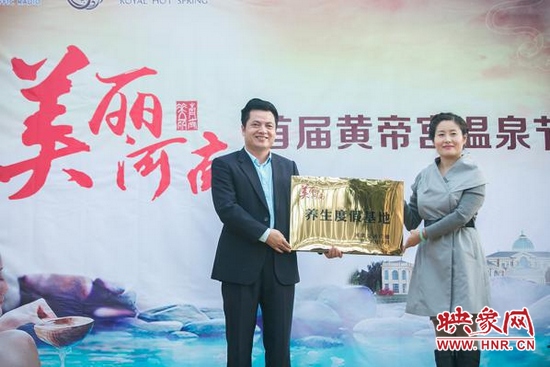 黃帝宮御溫泉被授予美麗河南“養生度假基地”稱號,河南交通廣播總監助理李芮女士和銀基國際旅游度假區總經理譚忠山先生進行了授牌儀式,光可鑒人的水晶皇后見證了這歷史的一刻。