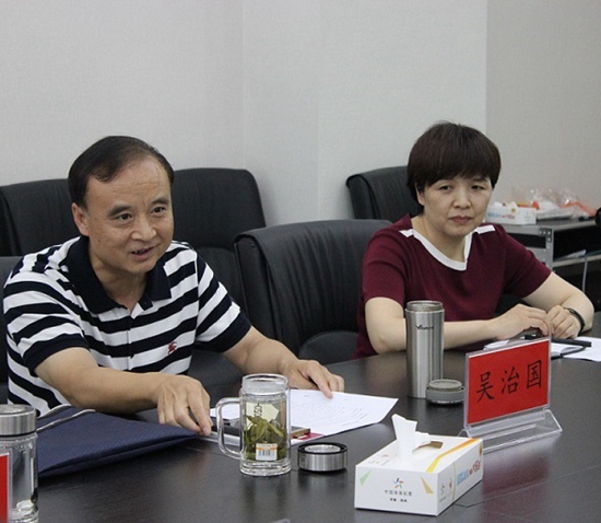 河南省體育局巡視員、黨組成員吳治國(左)和省體彩中心書記王海新(右)在分中心調研