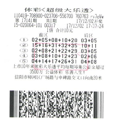 李先生中的這注大樂透千萬元大獎,出自信陽市浉河區廣場路與申碑路交叉口向南20米的4115020064101體彩網點,他以5注單式10元投注中得,為社會公益事業貢獻3.6元的體彩公益金。