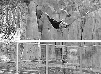 12月19日上午11時10分左右,洛陽市王城公園內,一男子坐索道穿越公園,行至虎山上方時,突然翻越索道護欄跳下,所幸被護網攔下。約20分鐘后男子被園方工作人員救出,男子自稱跳虎山為尋找刺激,“空翻沒翻好”。