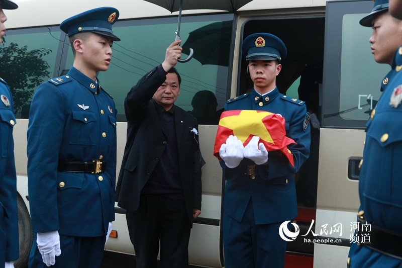 3月7日15時許,經過近3個小時長途跋涉,空降兵某旅直升機團四級軍士長、救火英雄李道洲魂歸故里——河南省光山縣。