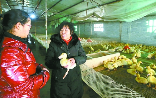 村里的奶牛場(chǎng)和養(yǎng)鴨場(chǎng)是吳樹蘭最掛心的地方,她每天都要去看看那里的生產(chǎn)情況,也經(jīng)常動(dòng)手幫忙。記者 郭 宇 攝