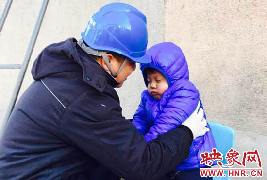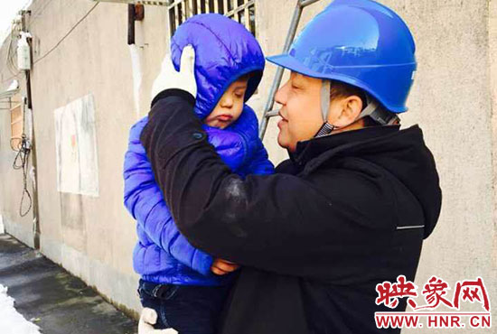 “你兒子睡著了,快下來(lái)吧。”11月23日,正在架電線(xiàn)的新密供電公司岳村供電所員工李磊聽(tīng)到同事叫他。李磊的兒子叫李昕龍,今年5歲,由于李磊妻子不在家,幼兒園又因雪放假,沒(méi)人照看李昕龍,李磊只好帶著他去上班。正在安裝智能表的李磊,聽(tīng)到同事叫他,趕緊朝下一看,兒子在冰天雪地里已經(jīng)睡著了。他急忙從梯子上下來(lái),把孩子抱起來(lái),由于剛睡著,孩子竟然沒(méi)有醒來(lái),他只好繼續(xù)抱著孩子睡覺(jué)。