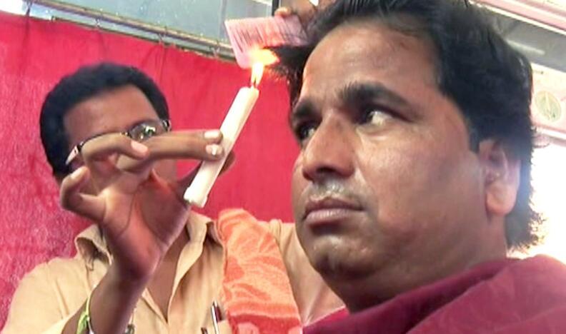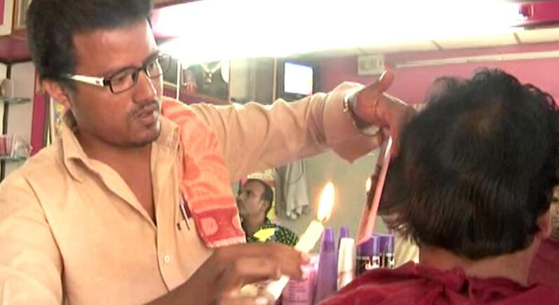 2016年11月1日報道(具體拍攝時間不詳),印度卡納塔克邦古爾伯加,28歲的DasharathKumar展示自己的獨門絕技——用蠟燭理發。