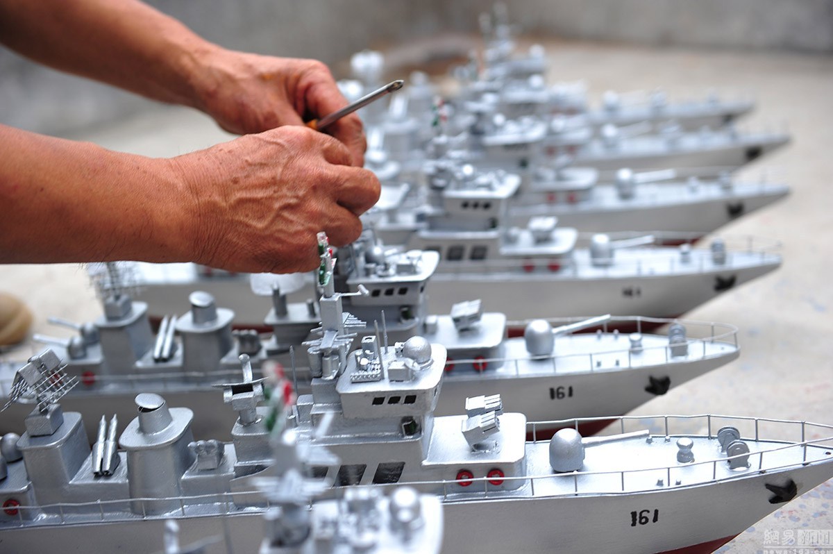 1月9日,今年59歲的郭長海,是山東省日照市山海天旅游度假區肖家村一位普通的漁民。從2005年開始,他自己純手工制作“軍艦”模型,可以說是到了癡迷的程度。十幾年來,他先后花費近6萬多元人民幣,造出了7艘可實現模擬槍炮發射的“軍艦”模型,十幾艘小軍艦模型。幾年來,因為他的癡迷,郭長海也成為網絡、報紙、電視,以及自媒體等關注報道的對象,成為“網紅”。