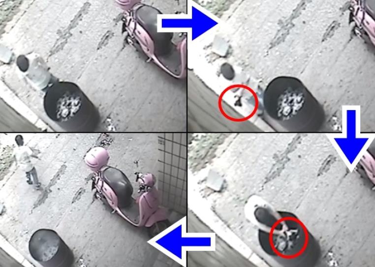 男童扔完后離開現場。