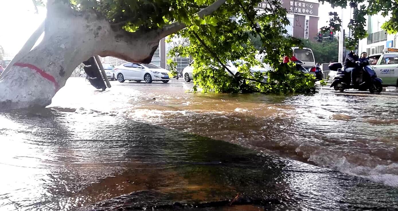 • 鄭州表情:鄭州水管爆裂 沖倒大樹線桿