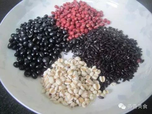黑豆:味甘性平,具有祛風除熱、調中下氣、解毒利尿、補腎養血、抗衰老、養顏美容的功能。黑豆還含有豐富的抗氧化劑——維生素E,能清除體內的自由基,減少皮膚皺紋,達到養顏美容、保持青春的目的。 紅豆:性平偏涼,味甘,含有蛋白質、脂肪、糖類、維生素B族、鉀、鐵、磷等,具有補血、促進血液循環、強化體力、增強抵抗力的效果。紅豆更是女性健康的好朋友,豐富的鐵質能讓人氣色紅潤。 黑米:性平,味甘,具有滋陰補腎,健脾暖肝、補益脾胃,益氣活血,養肝明目等療效。經常食用黑米,有利于防治頭昏、目眩、貧血、白發、眼疾、腰膝酸軟、肺燥咳嗽、大便秘結、小便不利、腎虛水腫、食欲不振、脾胃虛弱等癥。 薏米:性平味甘,微寒,有利水消腫、健脾去濕的功效,常食可以保持人體皮膚光澤細膩,消除粉刺、斑雀、老年斑、皮膚粗糙等都有良好療效。黑芝麻:補肝腎,益精血,潤腸燥。用于頭暈眼花,耳鳴耳聾,須發早白,病后脫發,腸燥便秘。